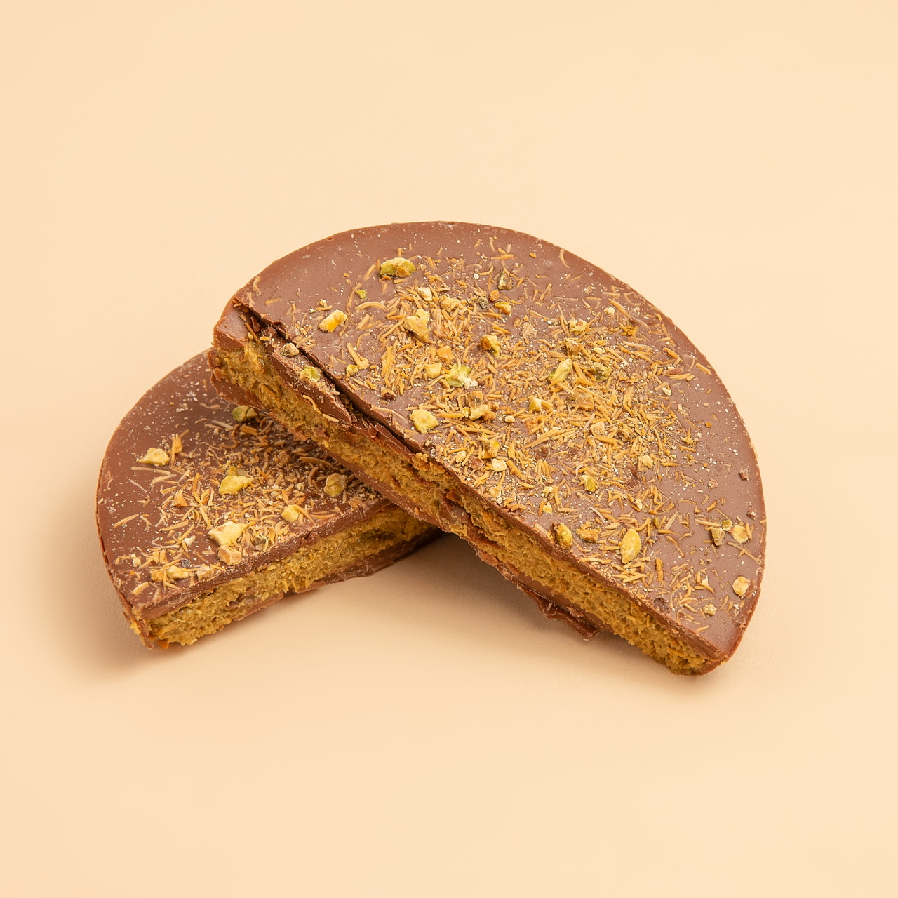 كيكة الفستق و الكنافة مغطاه بشكولاتة الحليب.