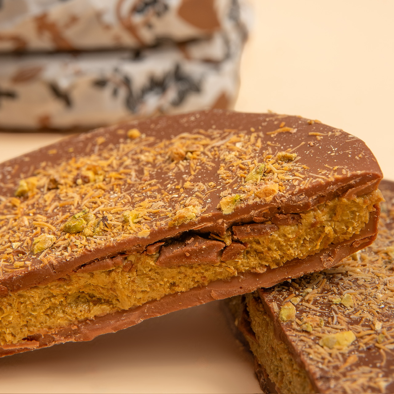 شوكولاتة بالحليب مع الفستق و الكنافة