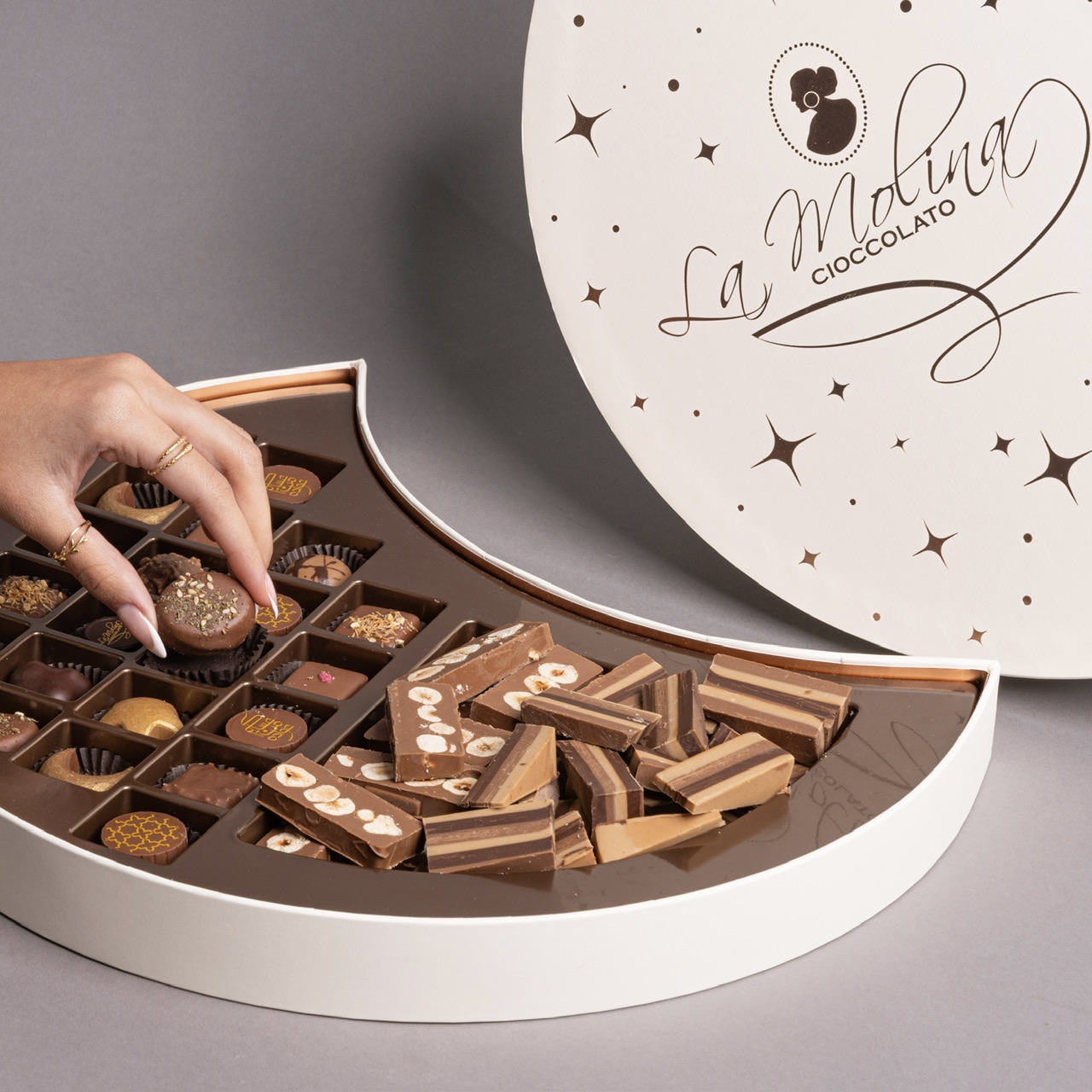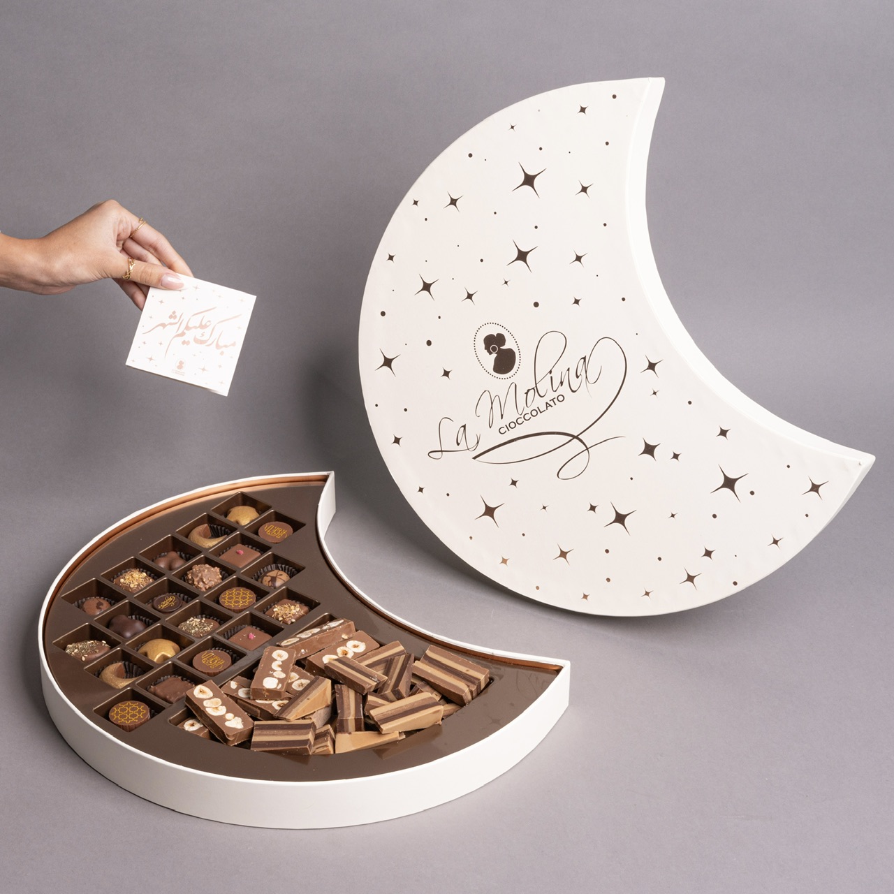 21 Assorted ramadan pralines, 250 gram classic ottavio and 250 gram xxl milk hazelnut bar.